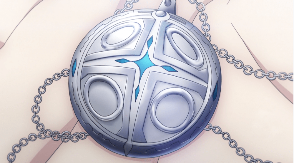 想到这里,他心中一动,解开军装领口的两颗扣子,摘下挂在脖子上的项链坠,那是一个饼状的银色坠子,中心刻着类似四象限十字架的图案,十字中心镶嵌有蓝色的晶石,再度构成了一个小小的内十字。