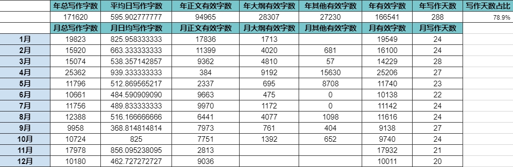 写作新方法实践一周年 作者Sknowt2023年10月17日2023年11月8日发表在写作手札 没想到这么快就已经一年时间了,虽然有点遗憾总字数没破20万,正文没破10万,天数没破80%(我怎么这么多遗憾),但这距离年底不是还有2个半月么(搓手)。到1月再正式统计一下2023年的。 今年写得很开心。希望明年也能继续这种开心。